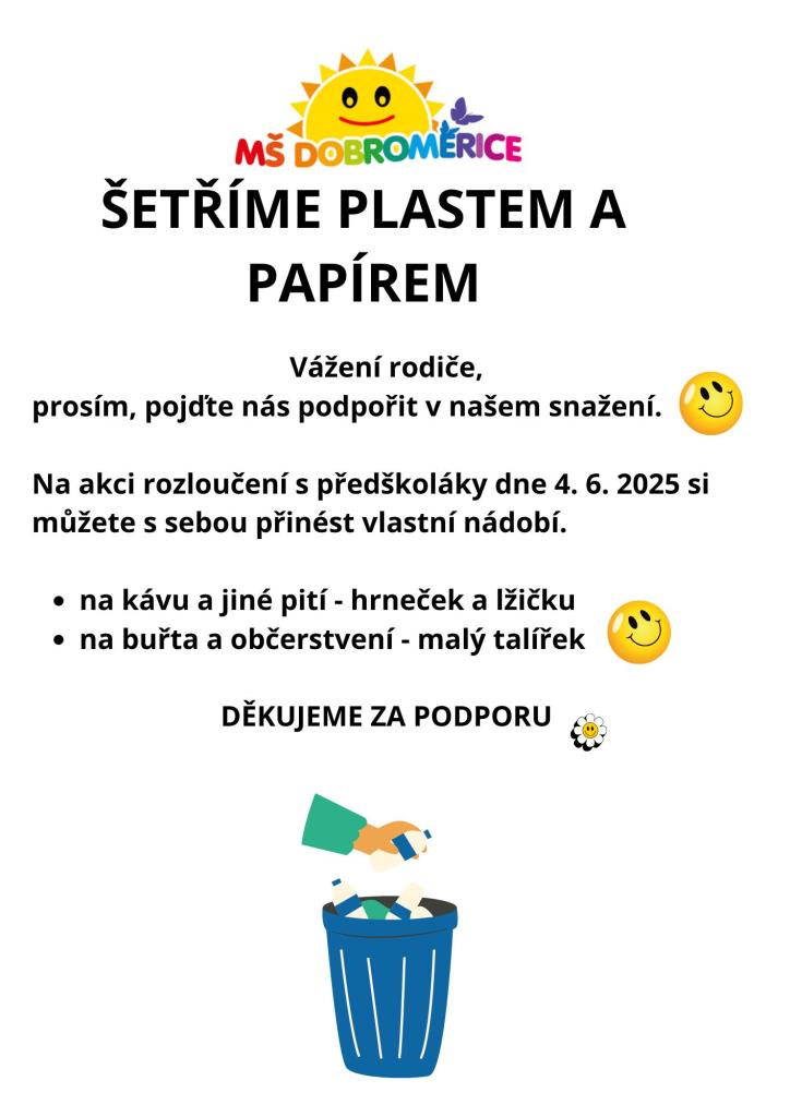 Podpořte nás v naší snaze chránit planetu tím, že budeme šetřit plastem a papírem a pokud můžete, přineste si vlastní tácek a hrnek:-)